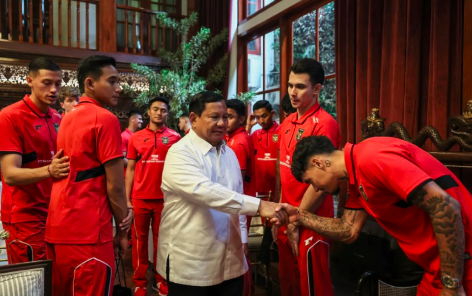 | Momen Presiden Prabowo menerima kedatangan timnas Indonesia di kediammnya. (presidenrepublikindonesia) |